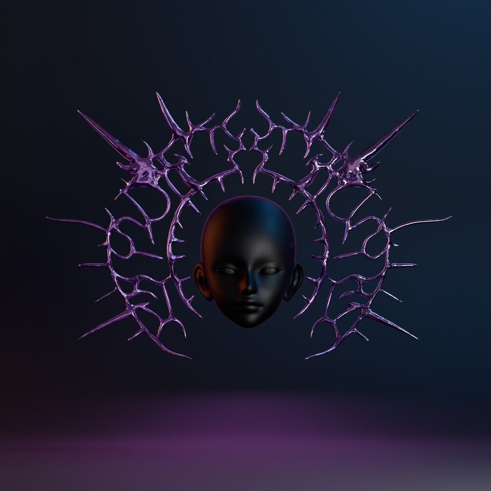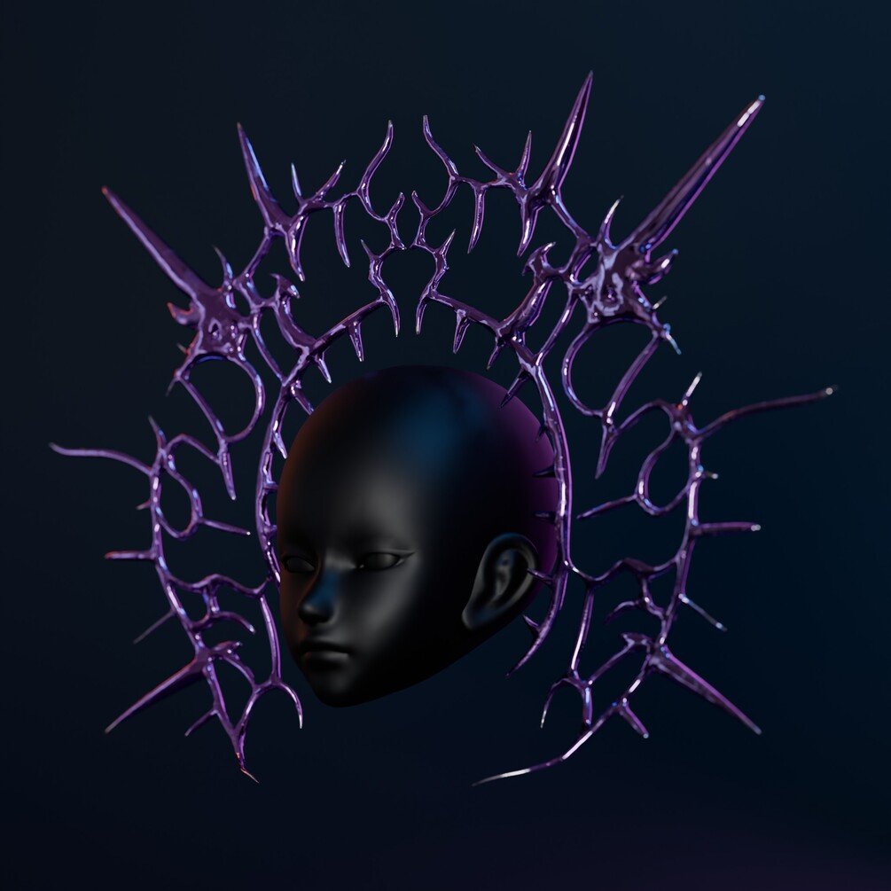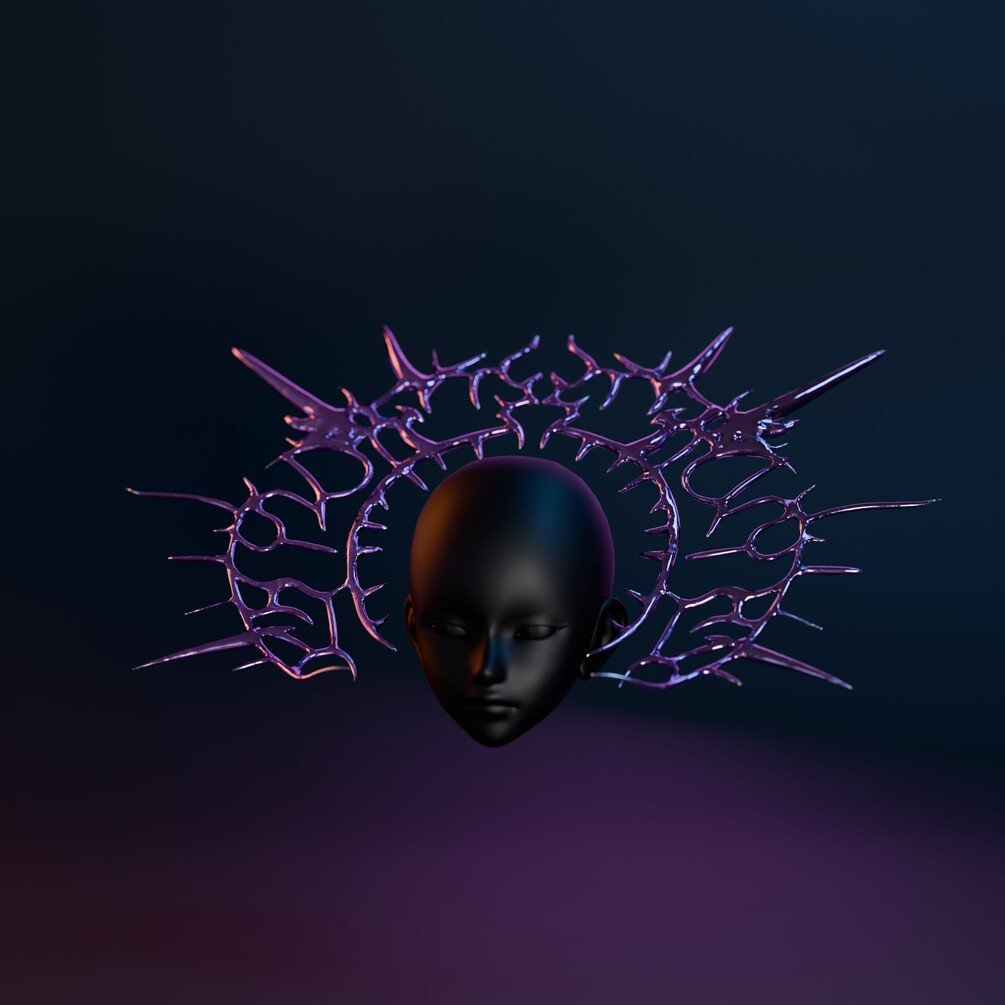 High-Fidelity "Void Spike" Halo for VRChat, Games, and Renders. A liquid chrome aesthetic piece inspired by Y3K and Cyber-Sigilism fashion. Designed to be versatile: Wear it as a Halo, a Crown, or a Floating Back Piece.